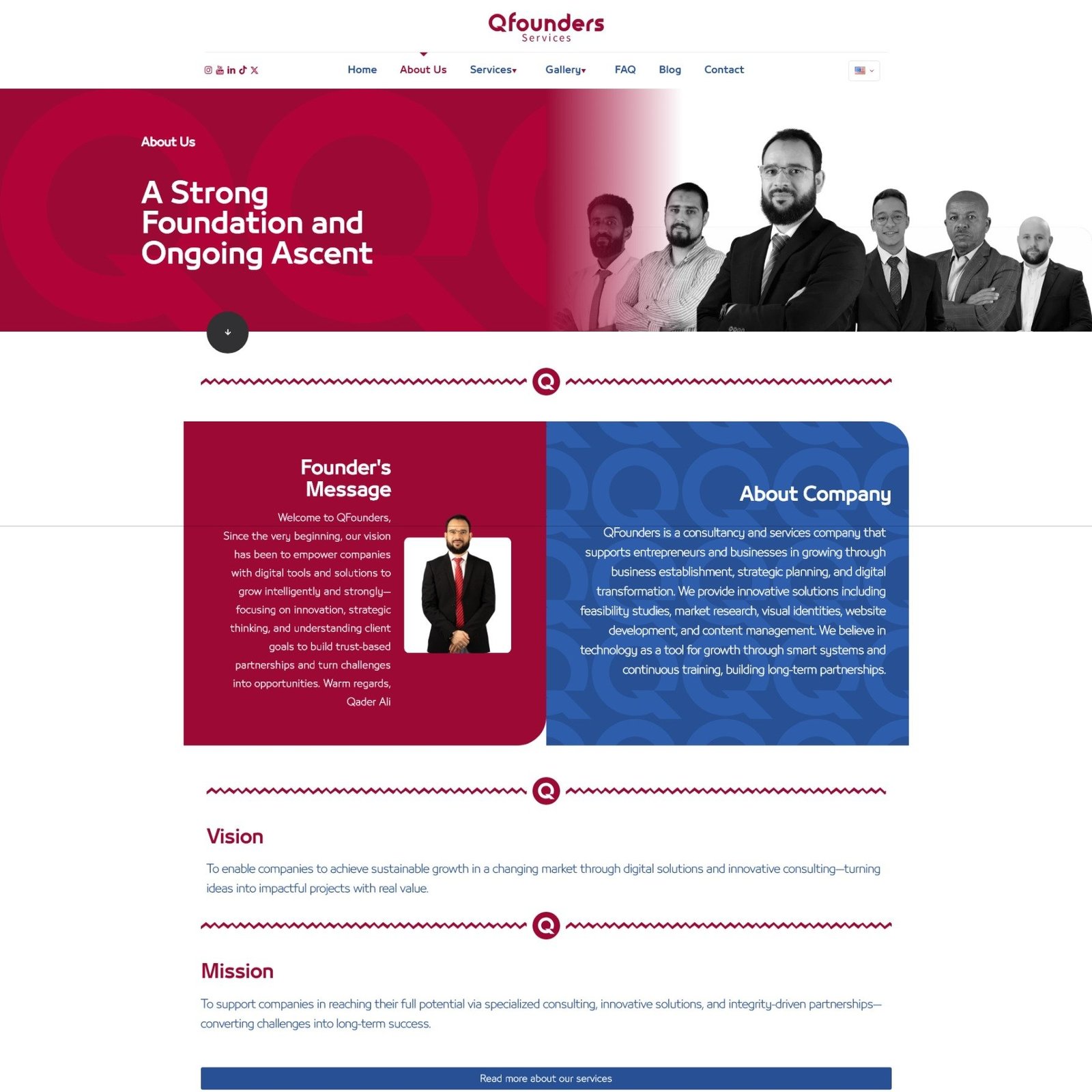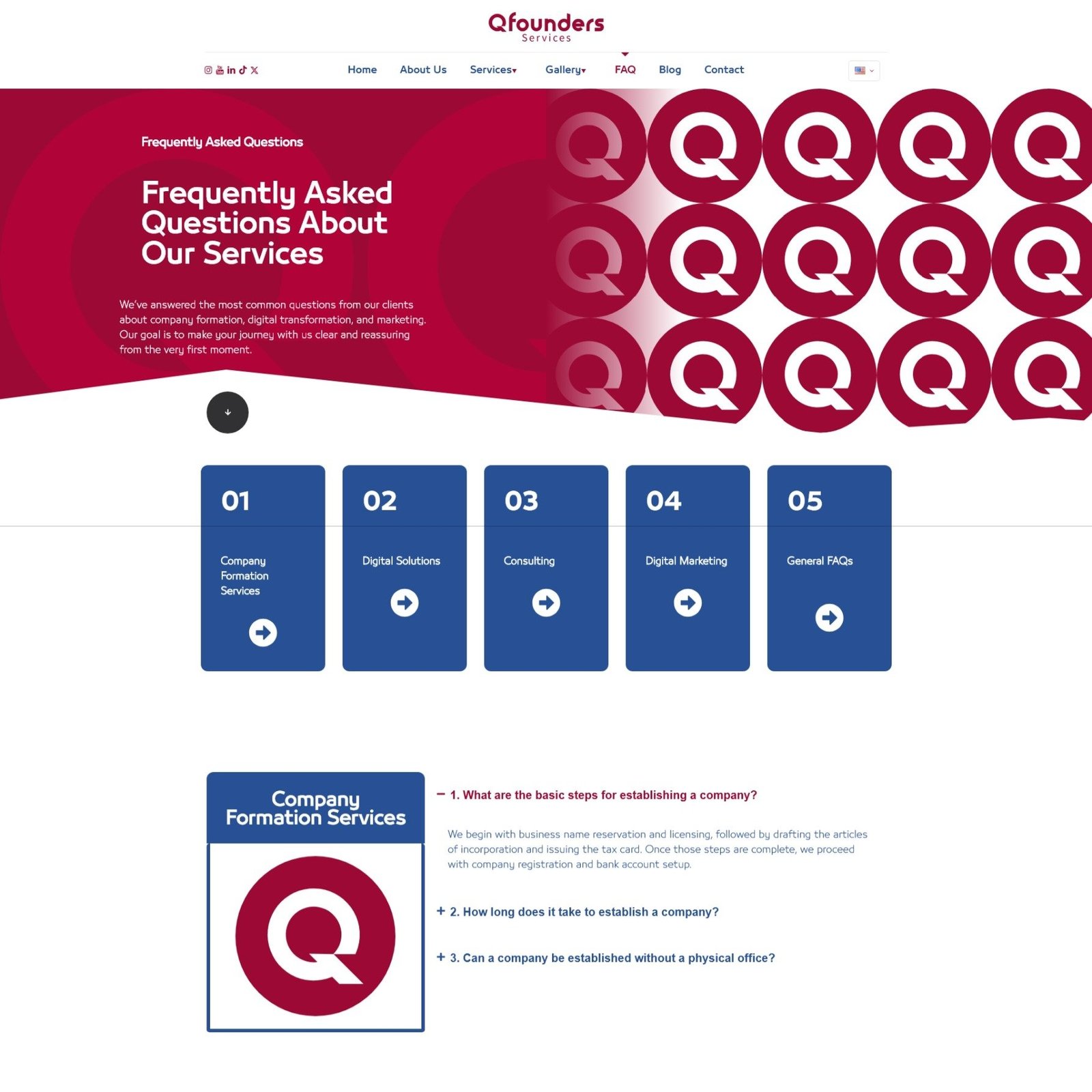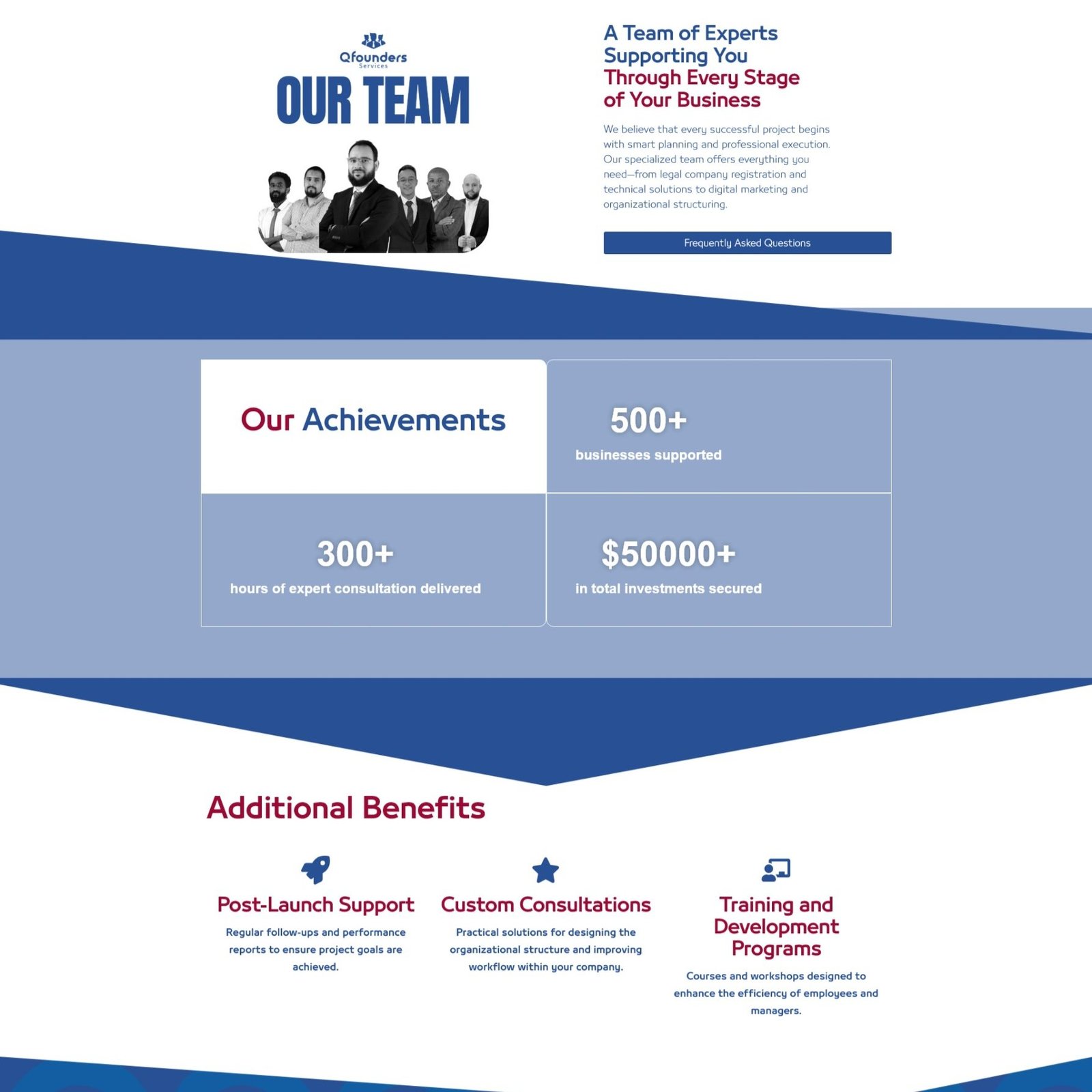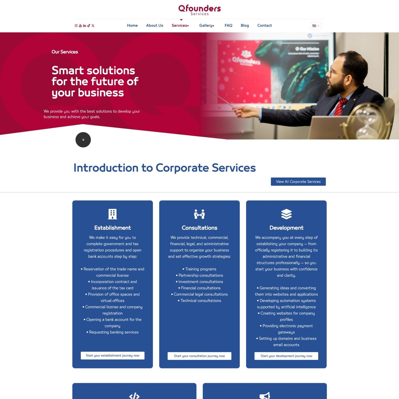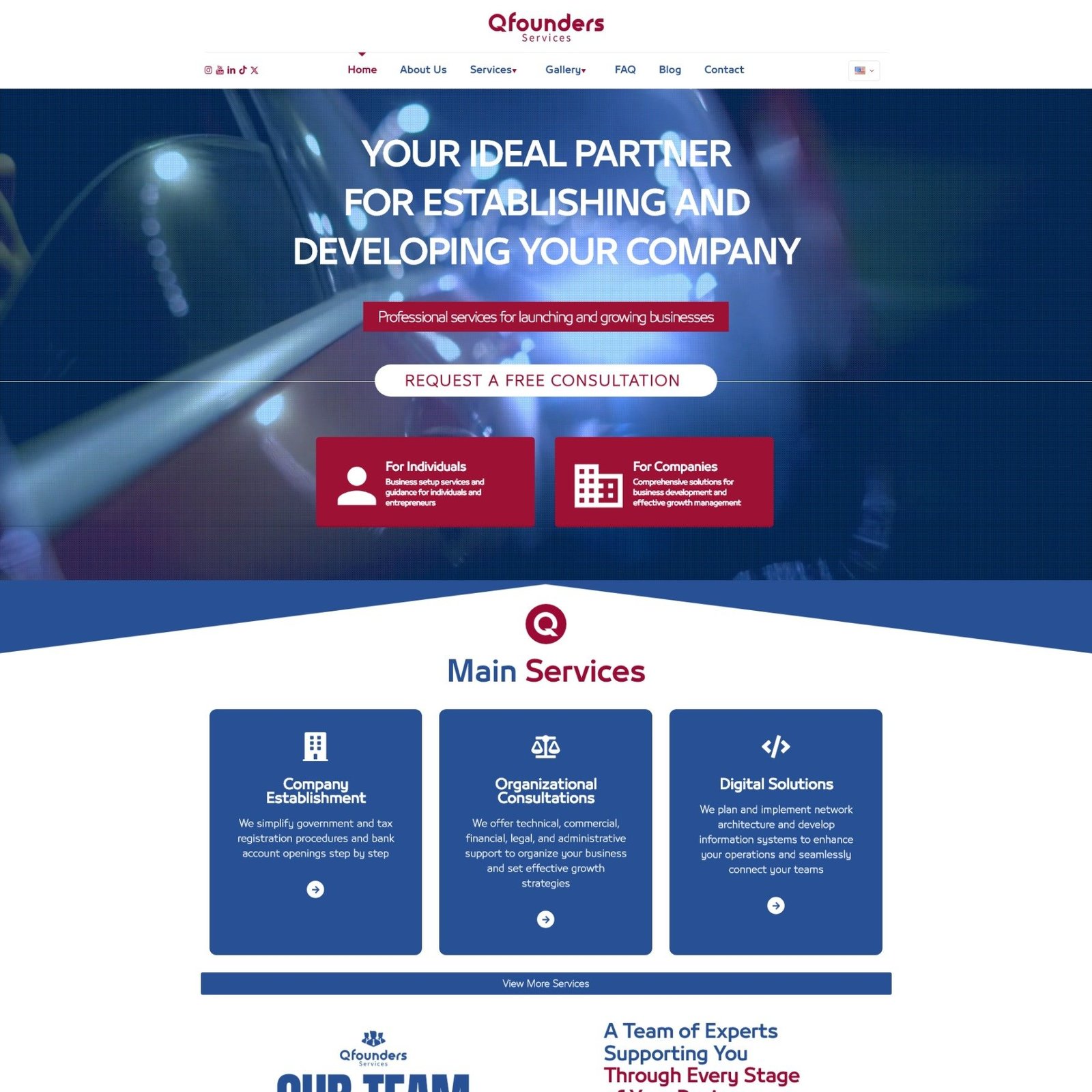 A clean, professional homepage for a business services firm. With segmented offerings for individuals and companies, and a strong CTA for free consultations, this layout builds trust and clarity. The “Main Services” section simplifies complex solutions into digestible value points, ideal for entrepreneurs seeking guidance.